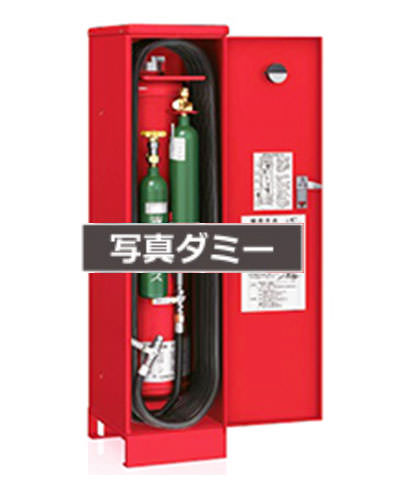 外壁のない建物や開口部が確保でき著しく煙の充満する恐れのない場所に限ります。格納箱にあらかじめ粉末消火薬剤の貯蔵容器やホース、噴射ノズルがセットされ、火災場所まで人がホースをのばしノズルを操作して粉末消火薬剤を放出する方式です。